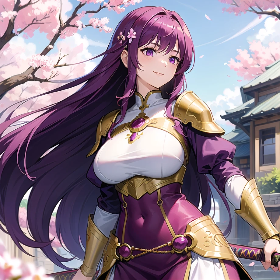 ・腰まで伸ばした赤紫色の長髪