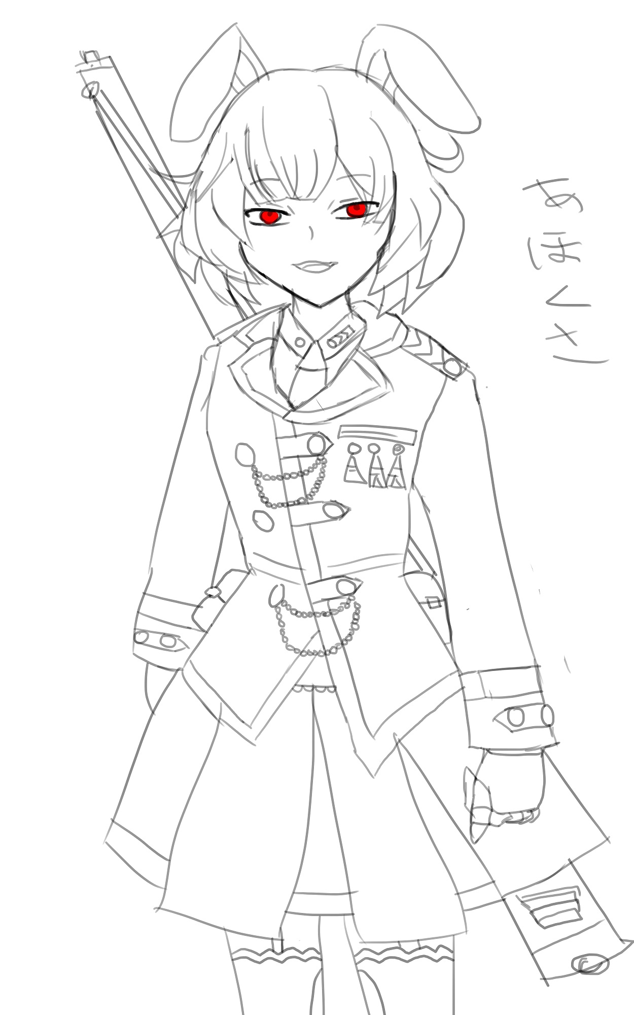 | ルールブックⅡ(P.30、経歴表C) ・濡れ衣を着せられたことがある。 ・家族に魔法使いがいる。 ・己に何らかの誓いを立てていた。 フェイダン地方にある「年輪国家アイヤール帝国」、その帝国に存在する対蛮族殲滅軍団「第503魔動機銃士突撃大隊」に所属するレプラカーンの女性兵士。レプラカーンと人間との間に生まれる少数種族の「エルーン族」であり、レプラカーンでありながら身長が人間並みにある種族。両親もこの大隊に所属する優秀な兵士であり、代々、大アイヤール帝国時代から領地を蛮族の侵攻から守ってきた軍人の由緒ある家系である。 だが数年前、帝国憲兵の査察により、両親に「召異魔術の禁法」に触れたとしてあらぬ容疑がかけられて出世街道真っ只中の彼女は一転、奈落のどん底に追いやられる。両親は逮捕されてしまい、銃殺刑に処されてしまい。自身も追われる身となり、帝国から逃亡。 以後は自身を妬みハメた人物である上官と中央閣僚一味をマーク、鍛錬を積み、証拠を掴み、真実を公にして、家族の恨みを晴らすと誓った。 蛮族はゴミ同然として見下しているが、人族も信用ならない者としてみている。 「新都市に来た理由」 巨大都市ミッドガルには特に理由もなく流れ着いてしまった、軍属経験なので都市防衛の職業軍人に再就職。ファフニール=スクエアの憲兵職に就いて治安維持に努めているが、ラピナにとっては至極どうでもよく、閉鎖的な貴族階級社会に辟易している。しかも給料がそんなに良くはないため、冒険者として出世しようと試みている。 〈容姿・性格〉 ・見かけによらず口調が適当で荒い、軍人家系出身だが両親は彼女に手を焼いていた。 ・軍大学を首席で卒業後、ディルフラムに最前線で配属される。兵士としては一流だったが、指揮官としては三流以下だった。元々人の上に立つ性格ではなかったようで、彼女の祖先は両親も含めて歴代の軍司令官だったらしく、両親が困惑した要因だったらしい。 ・彼女の厳粛な軍人家系ならぬ口調と素行の異端さは、両親が「かなり自由奔放に育てた」かららしい。 ・髪の毛はふんわりボブカット、髪色はかなりキツめのギャグピンク色。軍服が好きらしく、何かに従属し、奉仕することに快楽を感じている。銘家の軍人家系出身だが、宝飾や趣向品に興味はない。規則を守ることは絶対と考え、規則こそが自身を正すと考えている。故に、命令に忠実な悪い意味でも「一流の兵士」。 ・集中して銃の引き金を引くときに「はーい」と言ってしまう謎の癖がある、本人曰く「安全確認兼、相手への警告的な?」 ・様々な武器をコレクションするのが好き、マギテックガンやクロスボウガンが好み。 |